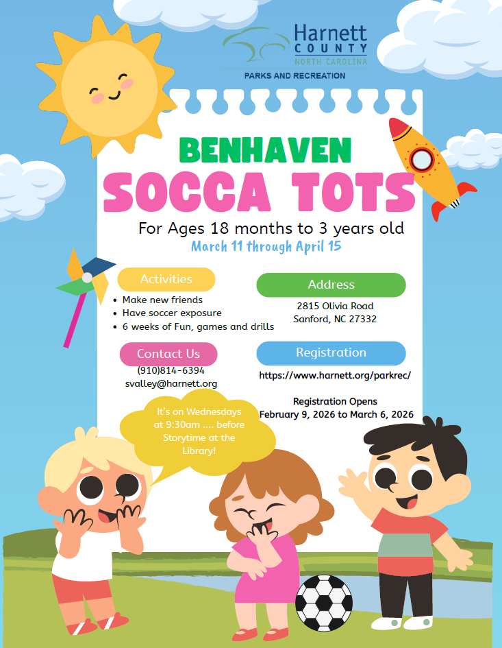 Register online at: https://harnettcountynctylerweb.tylerhost.net/8731prod/ParksRec/portal/Home or by calling 910-893-7518 or 910-814-6394